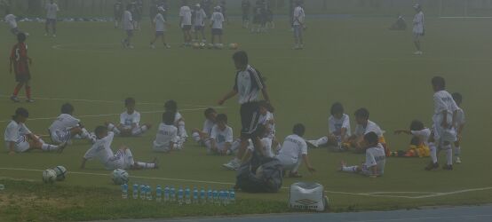| しばらくすると霧が迫ってきた。向こうのゴールが見えなくなるくらいの濃霧に。 | |